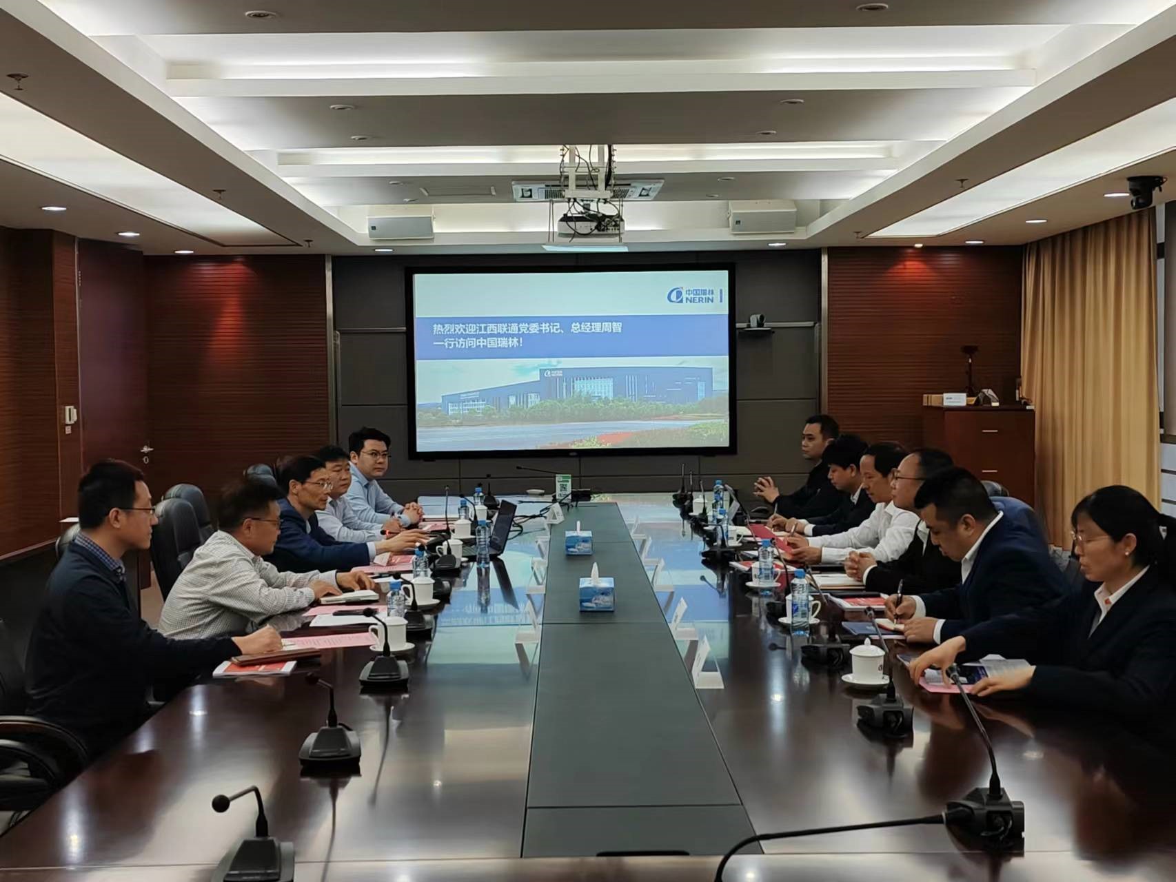 4月13日,中国联合网络通信有限公司江西省分公司(以下简称“江西联通”)党委书记、总经理周智一行访问中国瑞林,与中国瑞林党委副书记、总经理吴润华就双方合作事宜进行了友好会谈。