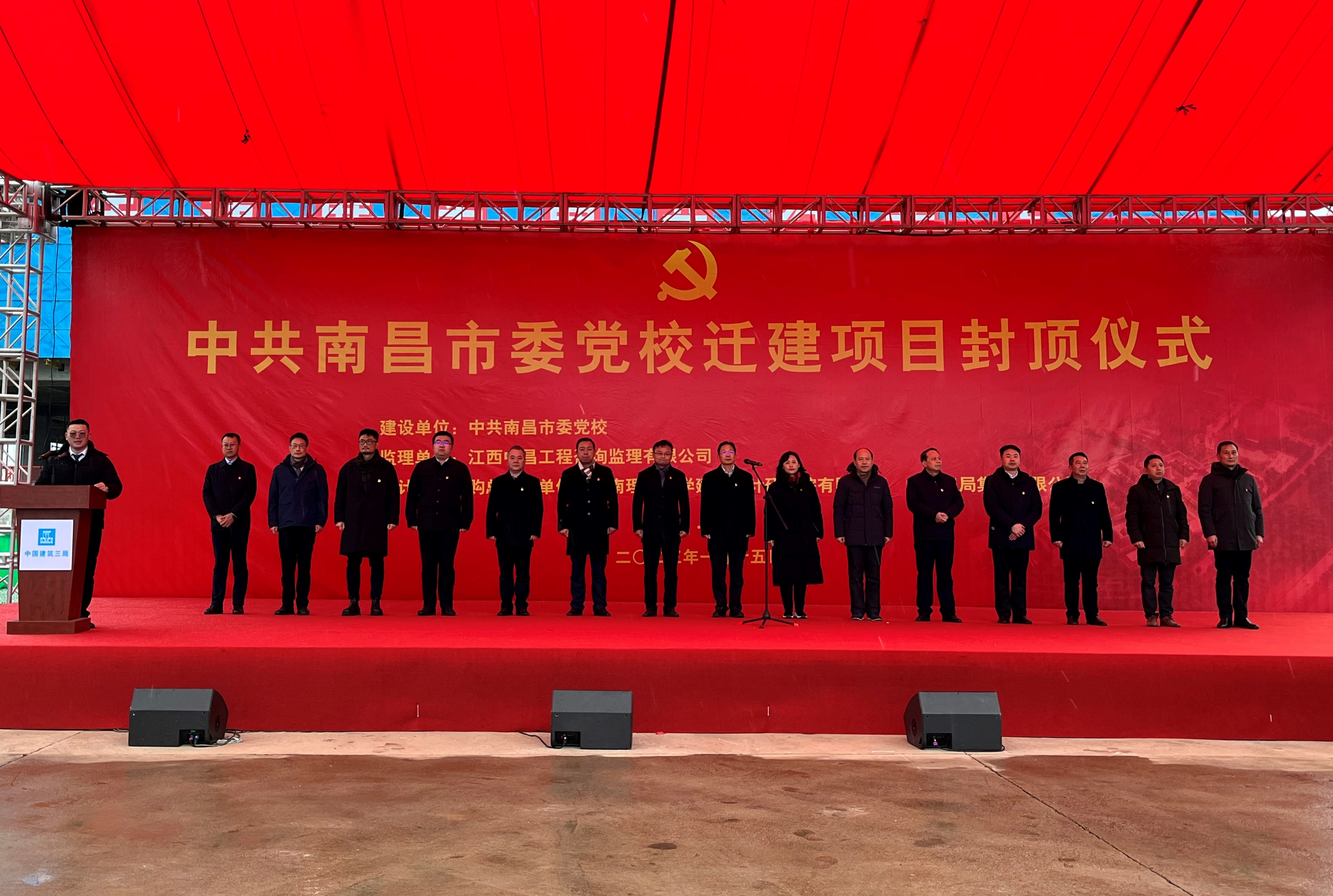 1月15日,由中国瑞林承担全过程咨询服务的中共南昌市委党校迁建项目举行主体建筑封顶仪式。南昌市人大常委会党组副书记、副主任宋铀,南昌市委党校常务副校长陶东阳及党校相关领导,中国瑞林副总经理方填三出席项目封顶仪式。