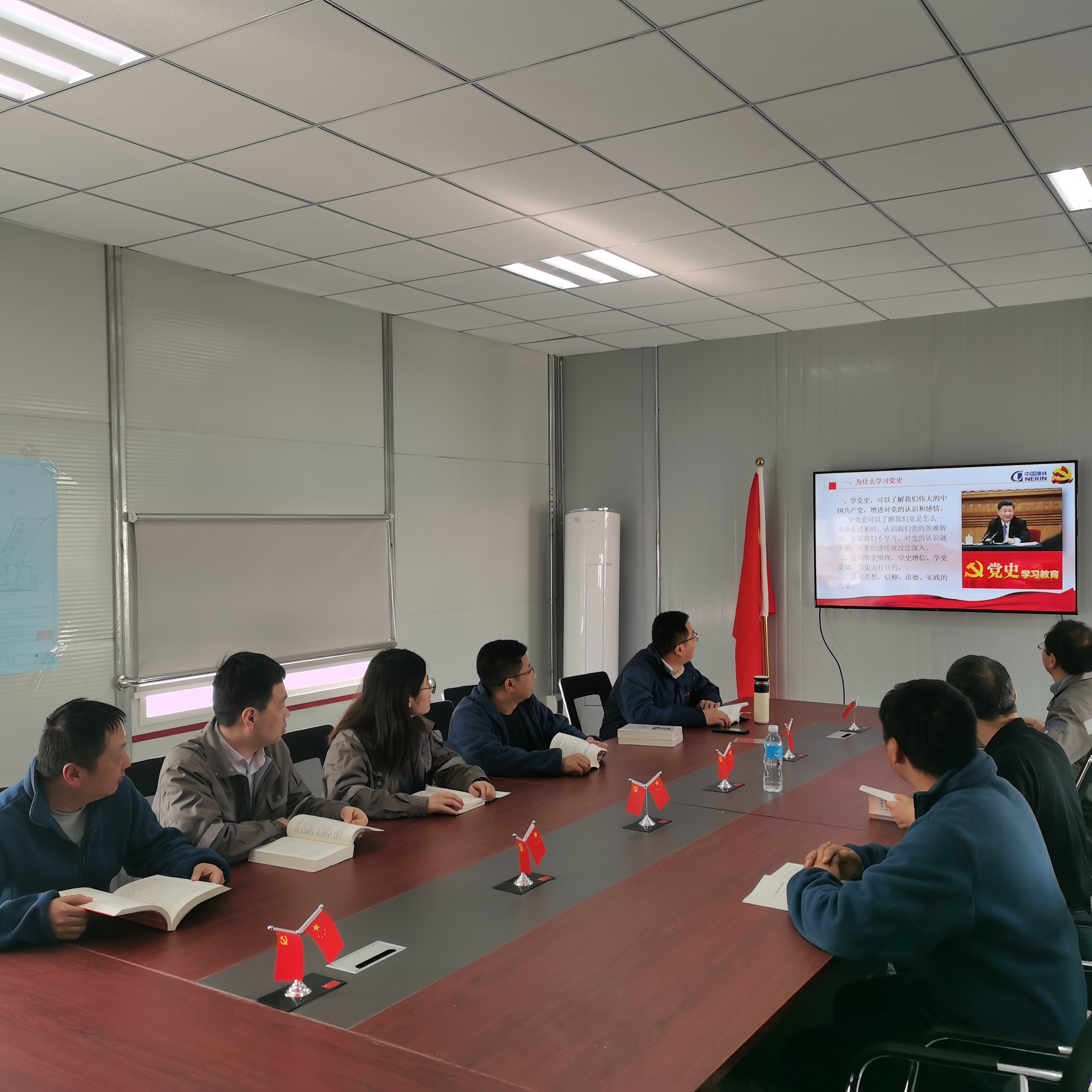 2021年4月26日上午10:30,根据公司党委《关于开展党史学习教育的实施方案》的部署,烟台项目临时党支部于搬迁新建18万吨阴极铜节能减排项目现场党员活动室,开展了第一次党建学习活动,践行初心使命,时刻不忘知党史,一心一意跟党走。